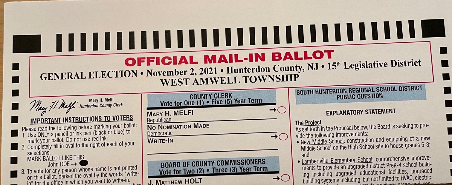 I recently got my mail-in ballot for the upcoming general election. One of the offices on the ballot is that of Hunterdon County Clerk (for Hunterdon County, New Jersey). The Republicans are running incumbent Mary H. Melfi as their candidate; the Democrats aren’t running a candidate this time. Assuming that I vote in this election (as I plan to), I have three options:
