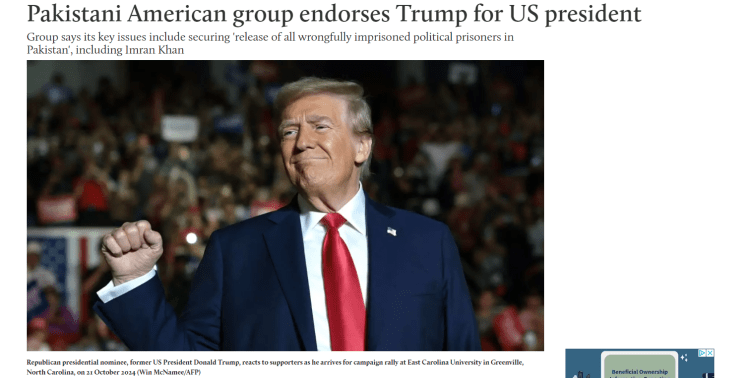 Here’s an article from Middle East Eye, “Pakistani American Group Endorses Trump.” Their reasoning: