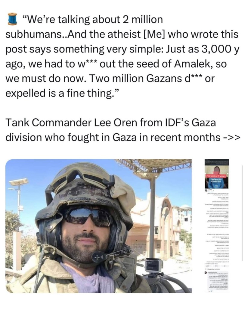 She read the room right: it’s certain that some would have objected, and that cumulatively, their objections might have scuttled the event. Presumably, the objection here is that when a Jewish state commits genocide against a non-Jewish population—after decades of apartheid, conquest, and military rule over that population—it’s objectionable to intervene. Its victims should starve, suffer, and die without resistance, in surrender to God’s will for them. The Jewish State must be allowed to finish the work of extermination. Palestine is Amalek, and Amalek must be wiped out.