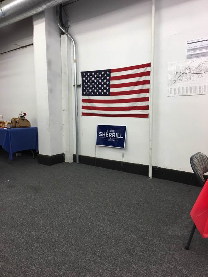 A Sherrill event in Bloomfield, New Jersey, ca. 2018, when I was a volunteer for the Sherrill campaign. Note the absence of a Navy helicopter on her campaign sign, before she discovered what hay could be made of it (photo: Irfan Khawaja)