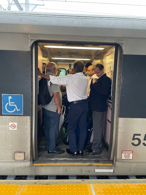 The next morning, I put Bob on the 7:26 am New Jersey Transit Express to Penn Station–along with maybe a thousand other commuters at Princeton Junction. Squint hard and you’ll see him.