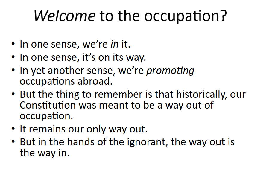I’ve screenshotted two slides from a lecture I gave at Felician University on Constitution Day back in 2017, plus a picture of myself as a younger man wagging a finger at an indifferent world. The title was partly a riff on Russell Means’s lecture, “Welcome to the Reservation,” and partly on Guns N Roses’s “Welcome to the Jungle.” The title of the present post, of course, is an allusion to the Sex Pistols’s “God Save the Queen.” I guess I’ve had a little trouble picking a Muse–Axl, Russell, or Johnny? But fascism is a both/and, not an either/or proposition. So welcome to the reservation, the jungle, and the loss of your future. They’re all here.