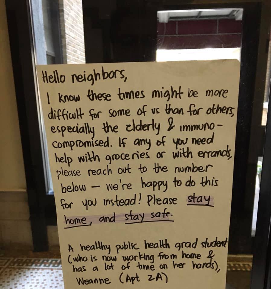 In the lobby of our building, 106 Cabrini Blvd, Washington Heights, April 2020