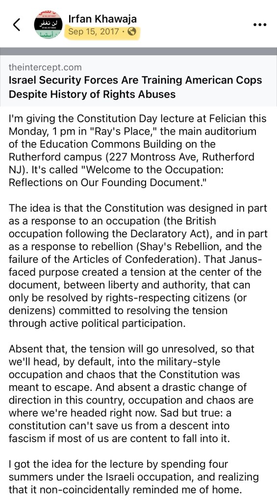 Welcome to the Occupation Posted on January 25, 2026 by Irfan Khawaja under Uncategorized A Facebook memory from 2017. I neglected to mention that I got the title and general inspiration from Russell Means’s 1992 lecture, “Welcome to the Reservation.” Unfortunately, they’ve both aged well. Share this: Email a link to a friend (Opens in new window) Email Share on X (Opens in new window) X Share on Facebook (Opens in new window) Facebook Share on LinkedIn (Opens in new window) LinkedIn Like Loading... Related