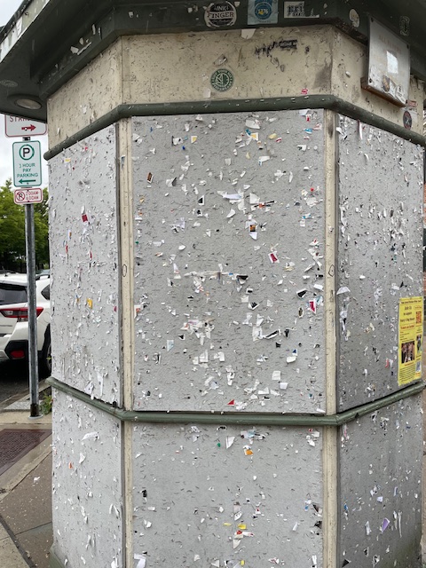 My understanding is that the new kiosks may have a sort of hybrid design: partly electronic, and partly tack-on. But I’m curious to know how the Municipality intends to regulate the content of the flyers on the kiosks in either form.