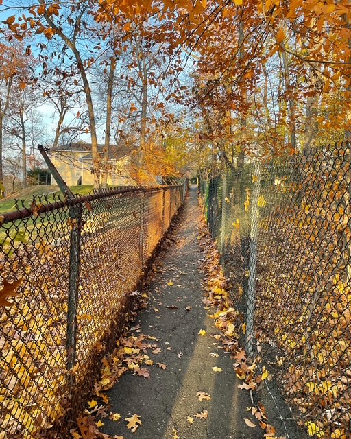 One more step, and it’s “defiant trespass”: the Sheridan Ave shortcut to Stagg Field