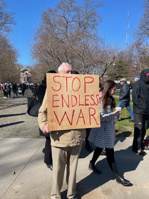 That was an understatement. Mea culpa. The hard truth is that No Kings really sucked–managed dissent and manufactured consent at its worst. The rally was about 90 minutes long, and attracted about 1,000 people. A small (but visible) minority carried anti-war signs and banners, but most were interested in other things. The organizers– Indivisible Princeton and the ACLU of New Jersey, presided over by the local Democratic establishment–seemed to have gone out of their way to avoid mention of the war, and also tried their best to ensure that no one else mentioned it. Of maybe ten invited speakers, not one focused on the Iran War, or any war, or any foreign policy issue. And if you think this was purely accidental, I have a Persian Gulf strait to sell you.
