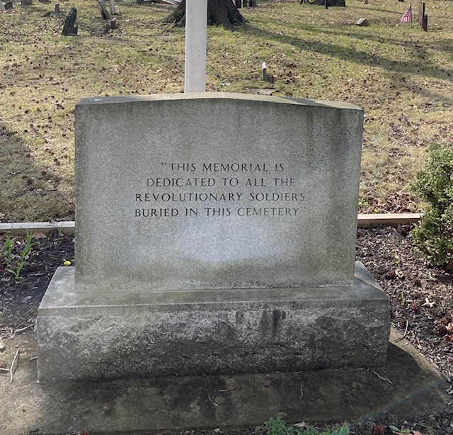 This memorial is dedicated to the anti-monarchist war we fought 250 years ago so that we could fight one in support of six monarchies today (Metuchen, New Jersey)